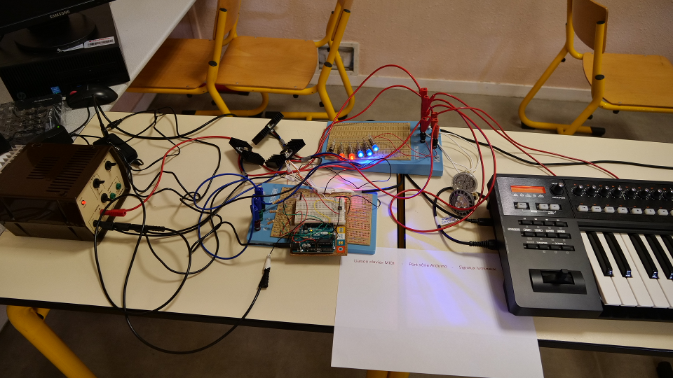 Interprétation du protocole MIDI entre un clavier et une carte à microcontrôleur Arduino : commande de lumières.