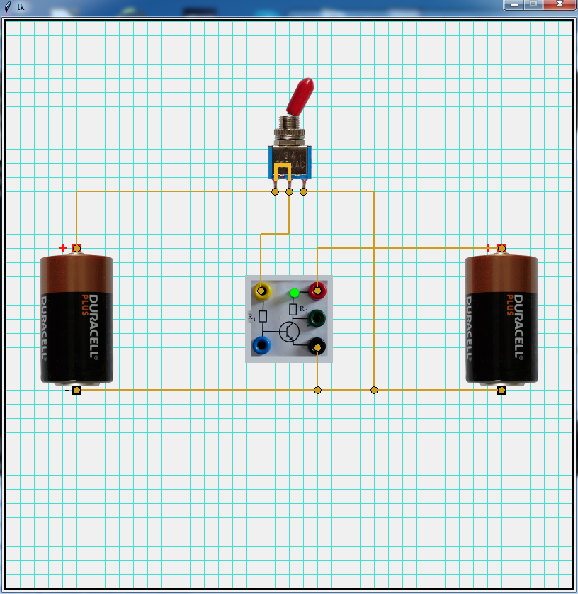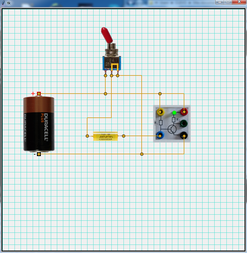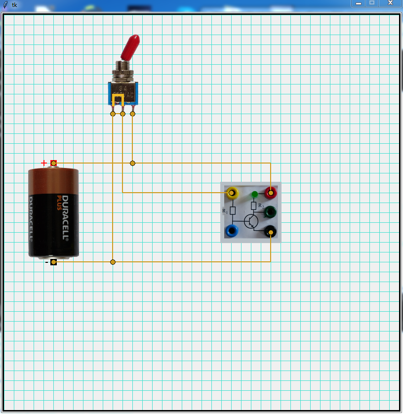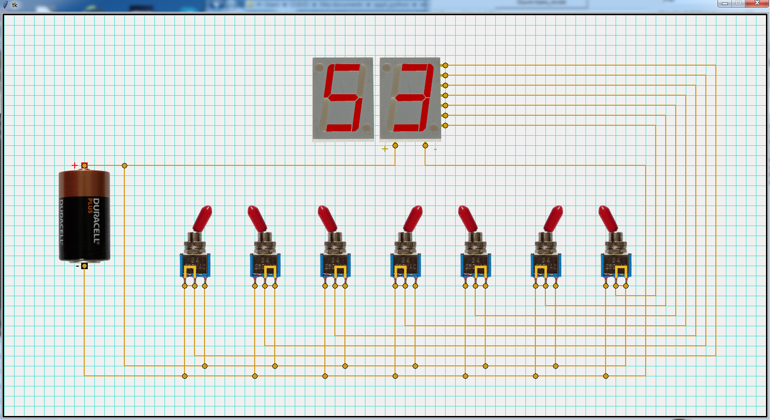 Translab est une procédure en langage Python qui permet de tracer le schéma d'un circuit électronique et de simuler son fonctionnement. L'utilisateur interagit en cliquant sur des commutateurs. Le circuit réagit en allumant des leds et des afficheurs numériques. Le paragraphe qui suit montre des copies d'écran de 18 exemples de circuits tracés en quelques secondes ou quelques minutes et simulés dans Translab. On trouvera ici le lien de téléchargement de la procédure Python translab_18_06.py, avec les 18 exemples de mises en données, exécutables directement. On trouvera ici la documentation pdf pour utiliser Translab : - ouvrir une mise en données existante et l'exécuter, - modifier ou créer une mise en données et l'enregistrer. Le module Python Translab propose actuellement 7 types de composants électroniques sous forme d'objets Python. Il est possible pour l'utilisateur de créer ses propres objets Python pour d'autres types de composants électroniques. Les circuits modélisés et présentés ci-dessous font l'objet de réalisations avec des "vrais" composants, dont on peut voir les photos ici ou là, accompagnées de liens explicatifs.