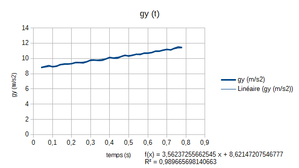 l'accélération d'un objet qui descend. La courbe déduite de la vidéo 3328px par 2496px (trajectoire parabolique en haut de cette page) avec une obturation