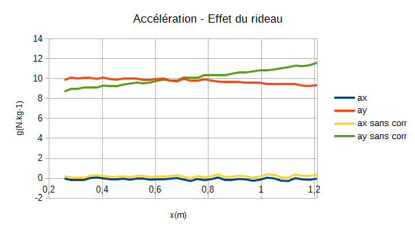 La précision obtenue sur l'accélération est alors tellement bonne qu'il est possible d'étudier les frottements de l'air, et la très légère diminution de l'énergie
